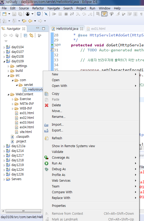 영어로 hello 서블릿으로 출력( 한글 깨짐 )