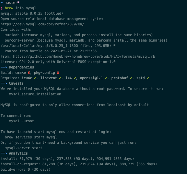 mysql Ver 8.0.25 for macos11.3 on x86_64 (Homebrew)