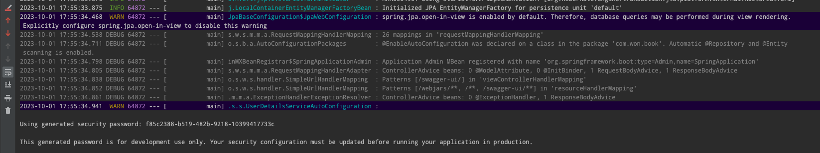 This generated password is for development use only. Your security configuration must be updated before running your application in production.