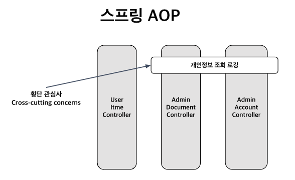 - Aspect-Oriented Programming 의 약자 AOP, 관점 지향 방식