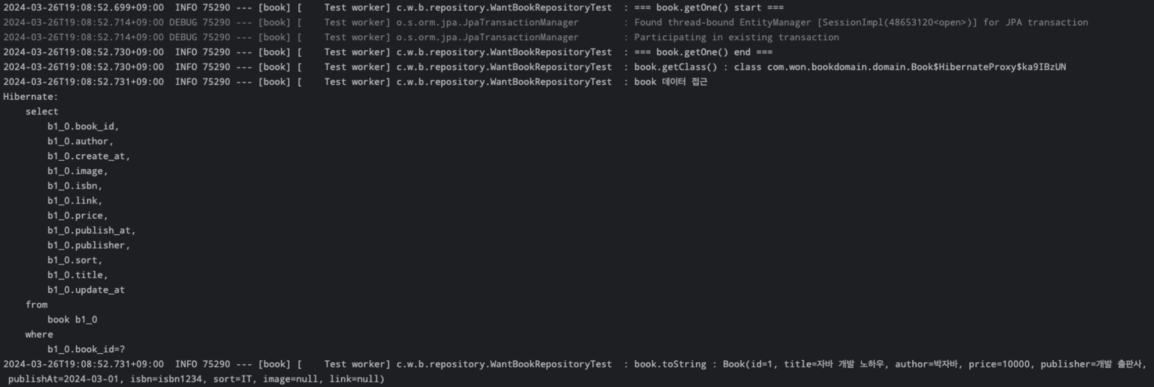- book.getClass() : class com.won.bookdomain.domain.Book