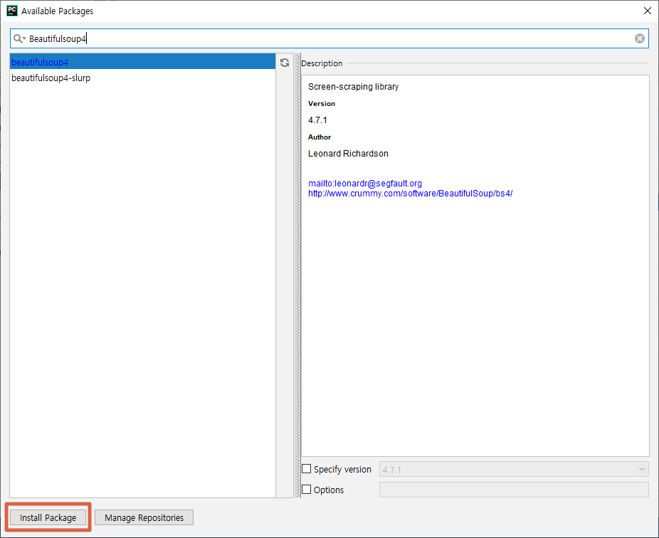 크롤링을 하기 위해서 설치해야 하는 것이 2개 있음