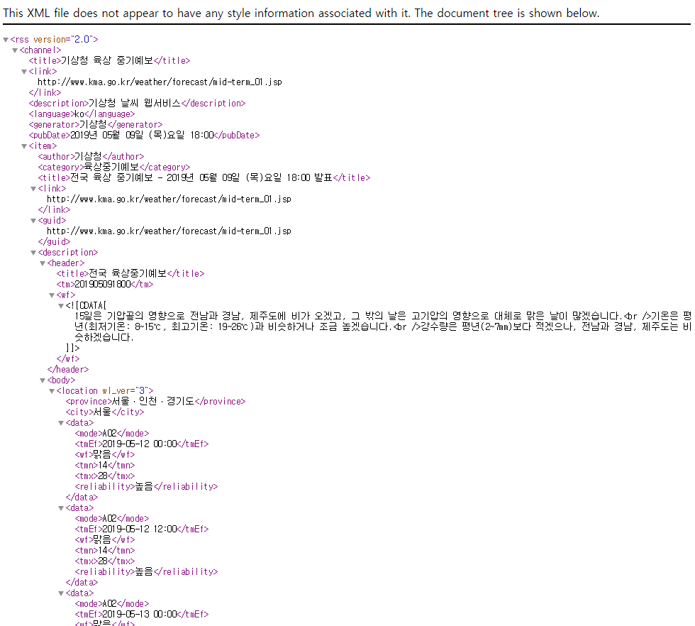 url = 'http://www.kma.go.kr/weather/forecast/mid-term-rss3.jsp?stnId=108'