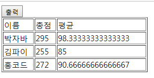 학생의 성적을 가지고, 총점과 평균을 구해서 테이블로 보여주는 코드 구현